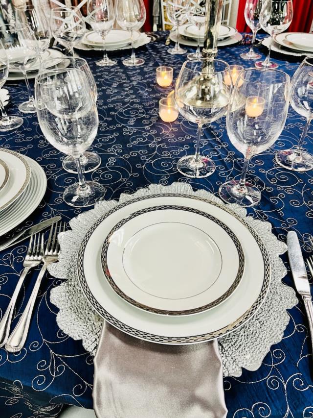 Patterns + Prints LinenNavy Taffeta Platinum Emb. |
